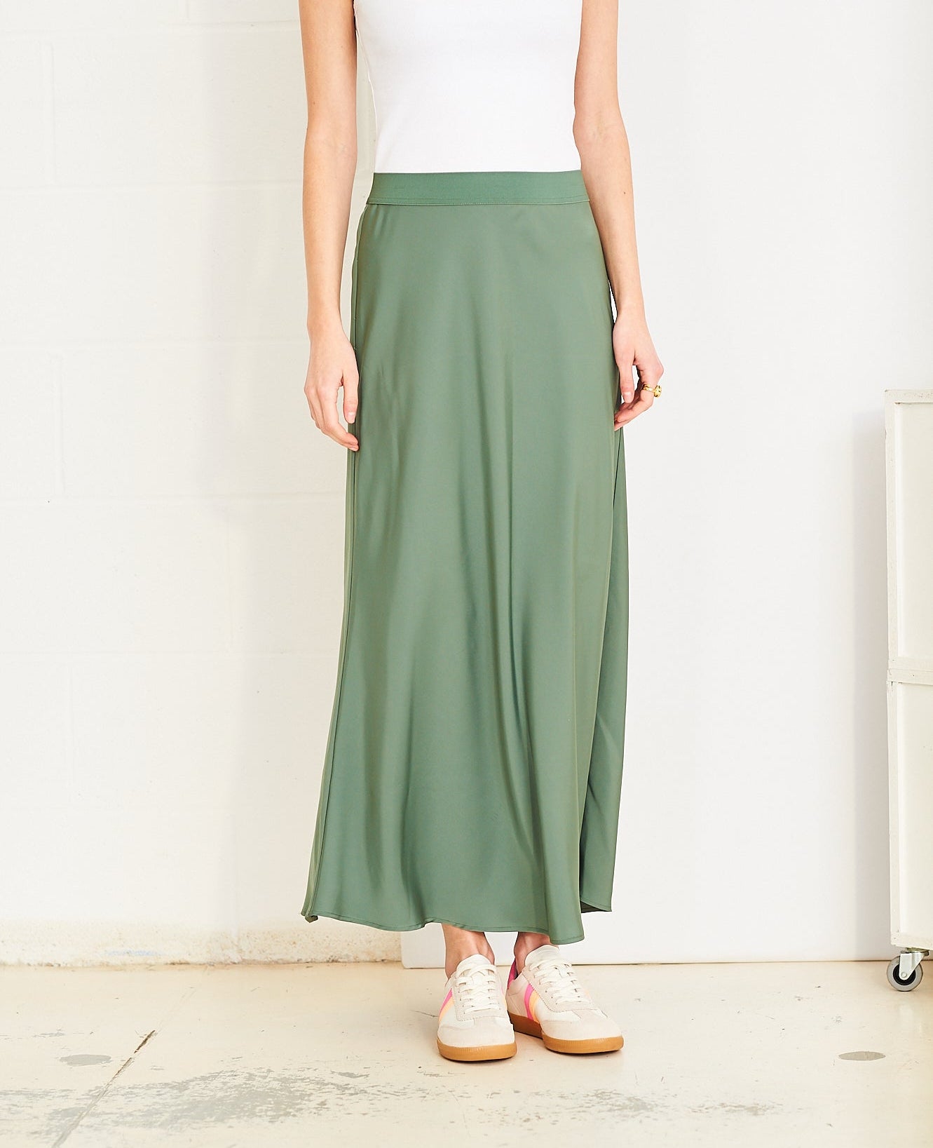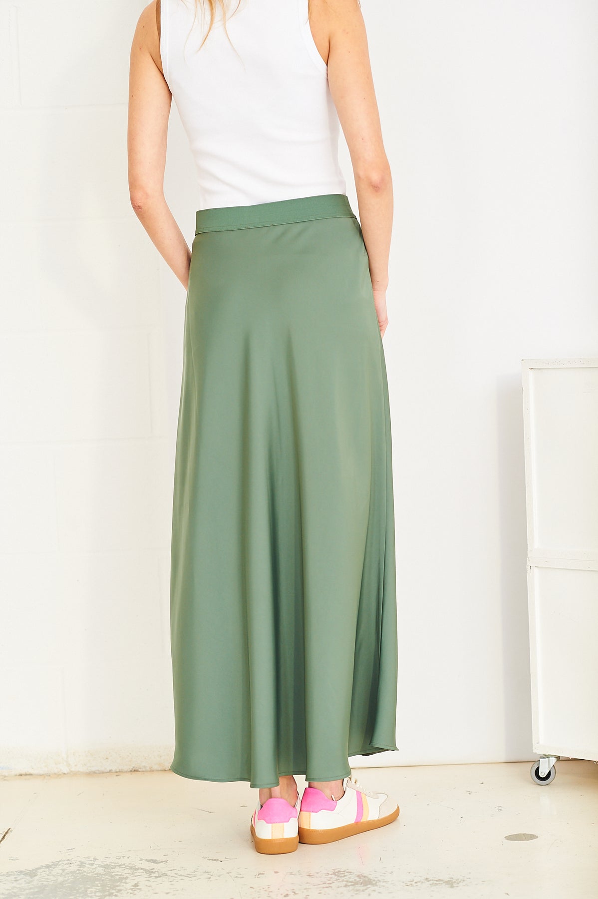 Our best-selling Tara skirt is back in a gorgeous shade of olive khaki - or on trend ‘shale green’ for spring.