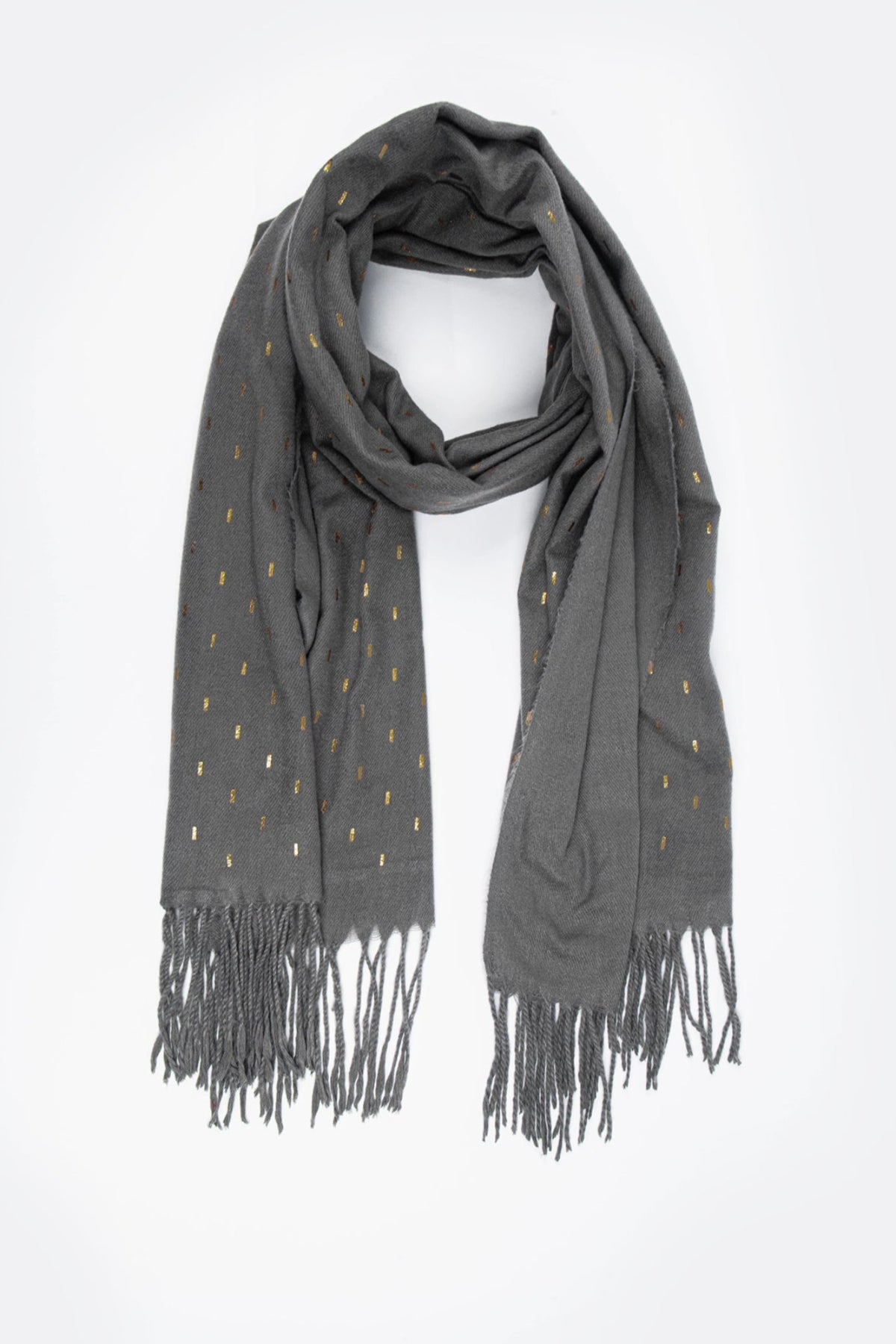With metallic highlights, this beautifully soft scarf will go with all your winter coats and jackets.